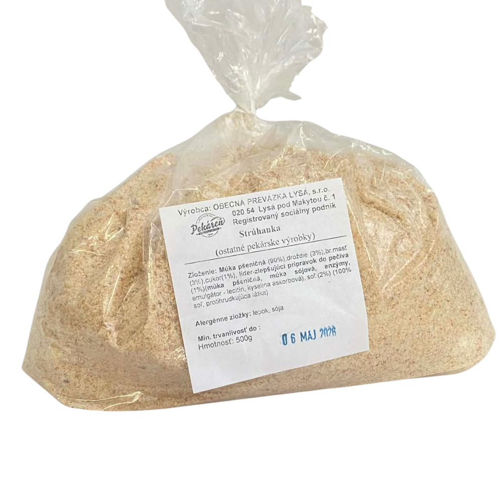 Naša strúhanka je vyrobená z kvalitného sušeného pečiva, ktoré zaručuje lahodnú chuť a chrumkavú textúru vašich jedál. Ideálna na obaľovanie mäsa, rýb alebo zeleniny, ako aj na prípravu zapečených pokrmov a posypov. Vďaka jemnej a rovnomernej strúhanej konzistencii sa strúhanka jednoducho vstrebáva do jedla a dodáva mu zlatistý vzhľad a lahodnú chrumkavosť.